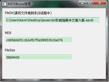 小工具最终是下面这个样子,将文件拖到上面会自动计算其md5与size