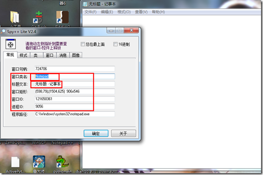 2.通过find_dlg = app.window_(title_re = ‘’, class_name = ‘’) 方法获得,这也是为什么我上面说标题文本与窗口类名非常重要的原因,title_re和 class_name这两个可以单独使用也可以一块使用,因为有时没有标题文本,也有时一个窗口类名有多个对象,比如“Edit”有时当一个对话框中有多个输入框时会有多个Edit类名,对于“关于记事本”我们可以通过以下代码获得
