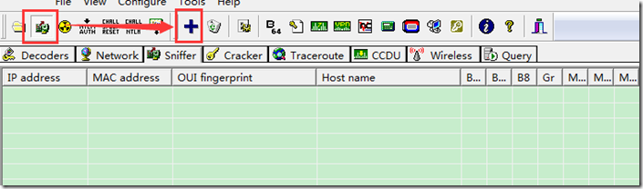 打开Cain主界面,先点击上面的小网卡标识,然后再点击那个’+’ 号