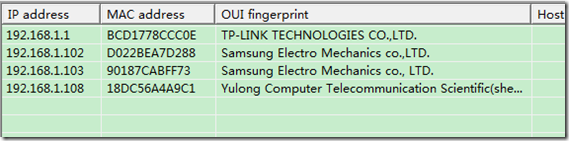 可以看到,在和我电脑同网段的有两个三星手机(其中一个是我的)和一台电脑