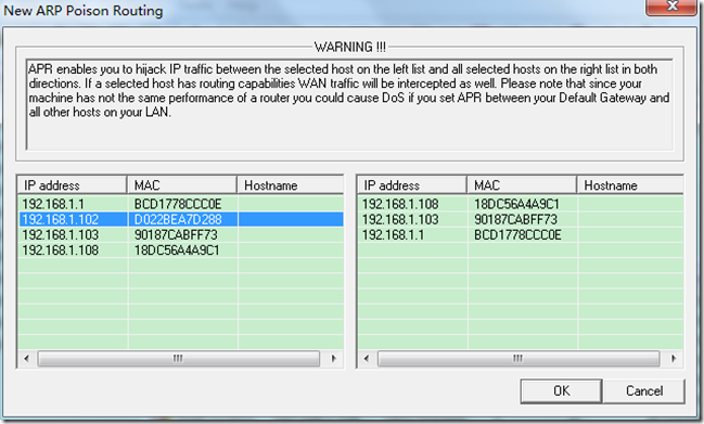 点击OK,回到主界面,这时点击那个小雷达标识开始进行arp欺骗