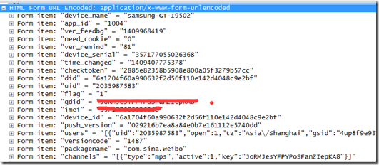 打开HTML Form URL Encoded: application/x-www-form-urlencoded,很多信息,但其实没太多的用,顶多那个uid:2035987583 这个是我的微博ID,